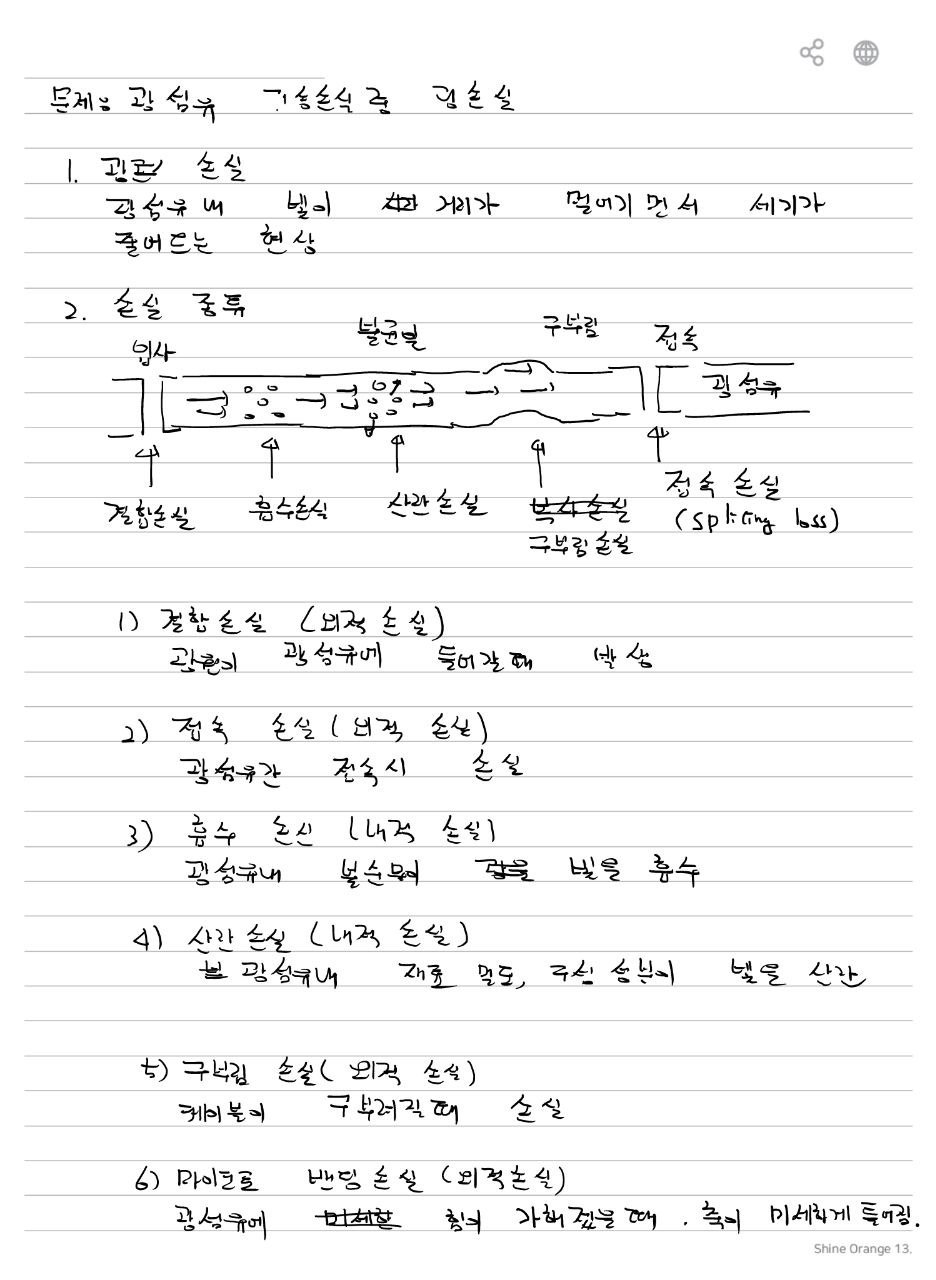 광섬유 광손실글쓴이 이대원 / 2024-03-16 광섬유 전송특성 중에서 광손실에 대하여 설명하시오 https://ensxoddl.tistory.com/227 광손실_광섬유다운로드 http://www.ktword.co.kr/test/view/view.php?no=1782