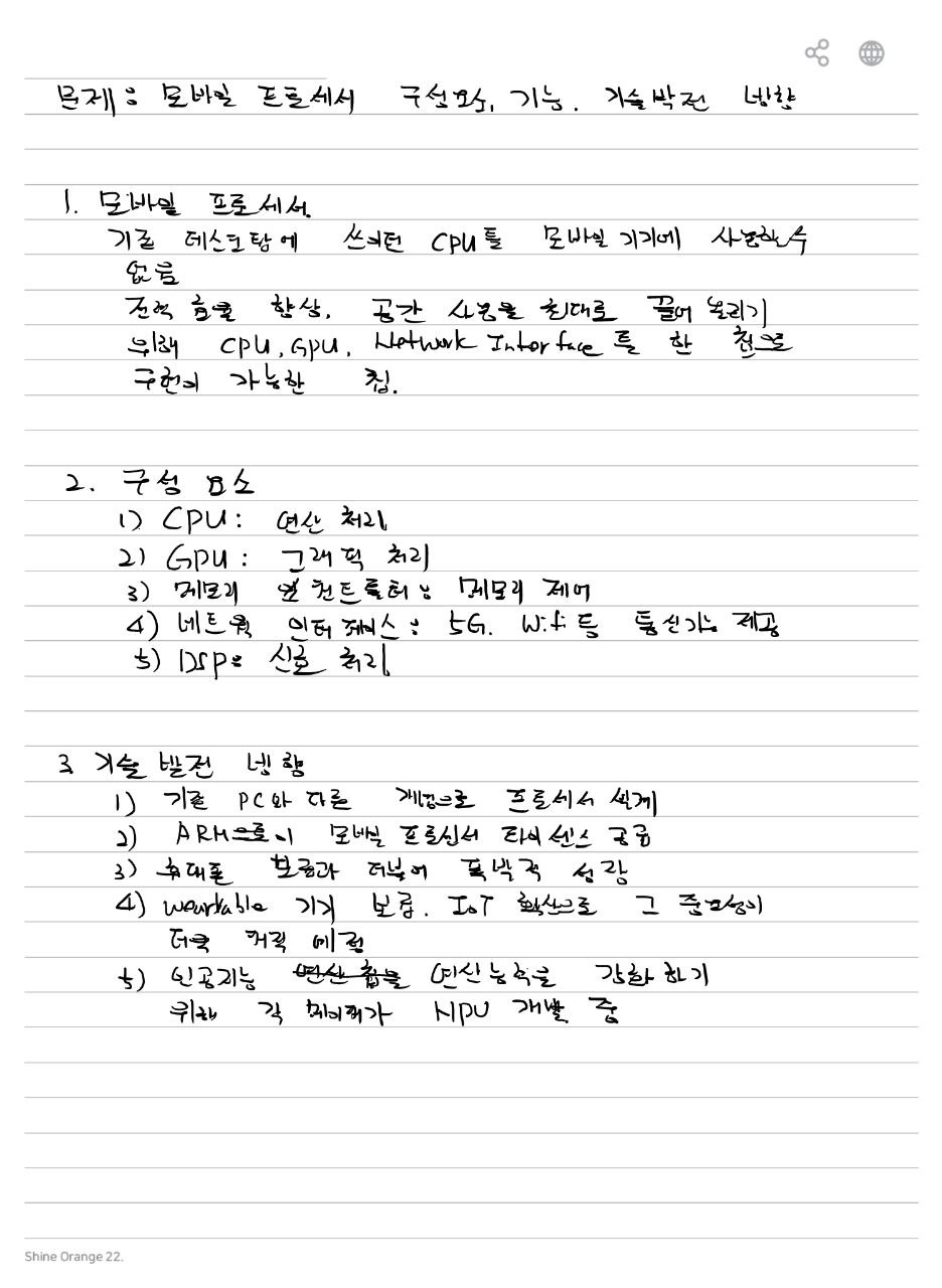 모바일 프로세서(Mobile Processor) 구성 요소의 기능과 모바일 프로세서 기술 발전 방향에 대하여 설명하시오.