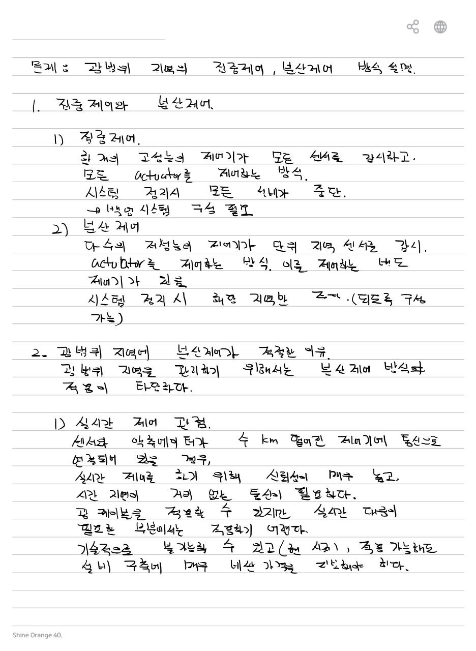 반면에, 분산제어 방식은 제어 장치가 시스템 전체에 분산되어 있는 방식입니다23. 각 제어 장치는 독립적으로 작동하며, 각각의 제어 장치가 자신의 부분을 제어합니다23. 이 방식의 장점은 시스템의 유연성과 확장성입니다23. 하나의 제어 장치에 문제가 발생해도 다른 제어 장치에는 영향을 미치지 않습니다23. 그러나, 이 방식은 데이터 관리와 시스템 통합이 복잡할 수 있습니다23.