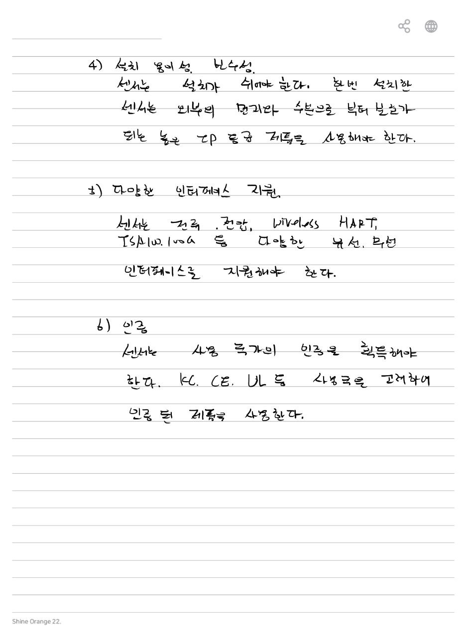 - 센서는 설치 공간이 제한된 환경에서도 사용될 수 있어야 하며, 다른 시스템이나 기기와 쉽게 통합될 수 있어야 합니다.