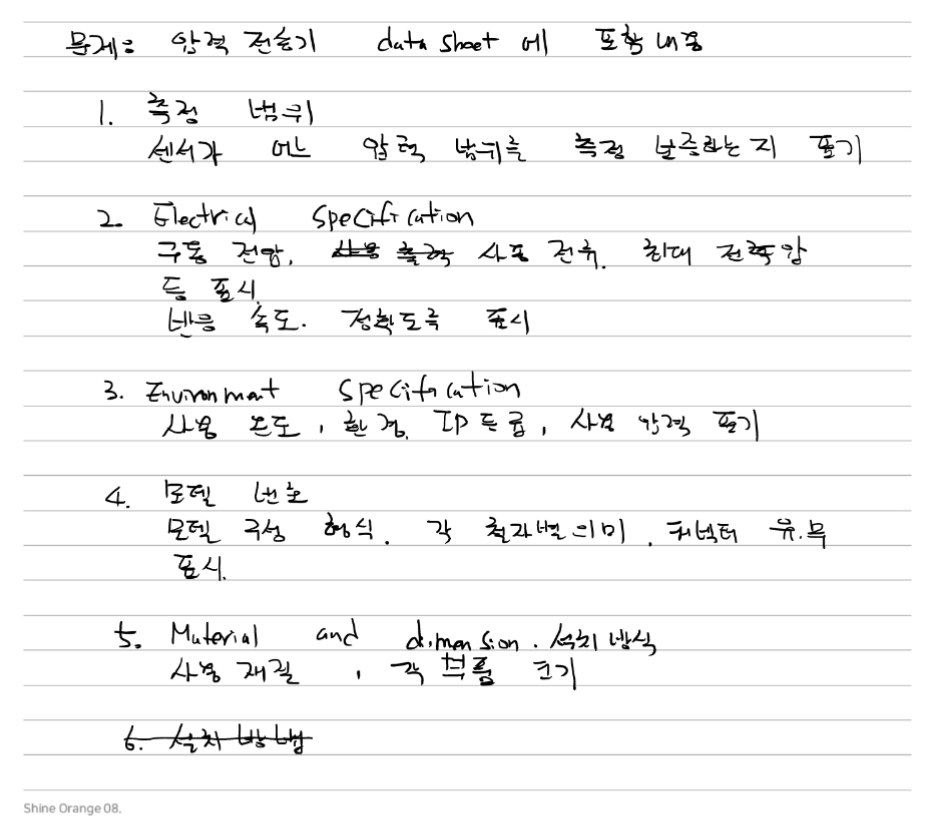 압력전송기 구매를 위한 데이터시트(Datasheet) 작성 시 명시해야 할 항목은 다음과 같습니다:
