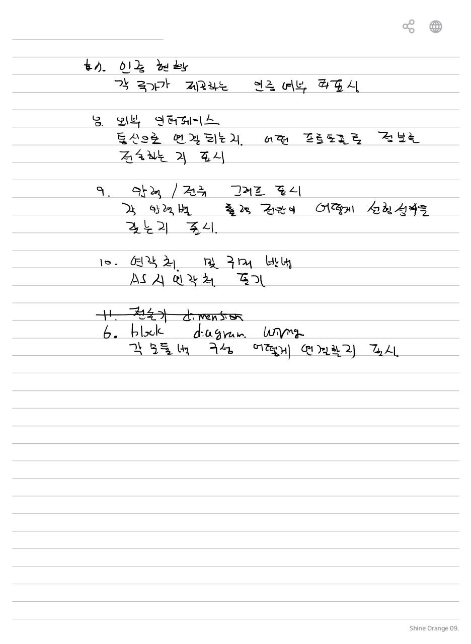 - 환경적 요구사항: 작동 온도 범위, 보관 온도 범위, 습도 등의 환경적 요구사항을 명시합니다.