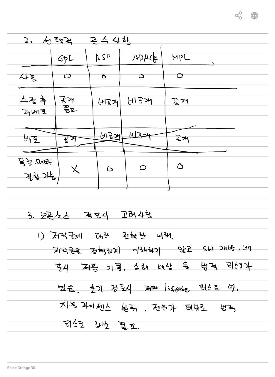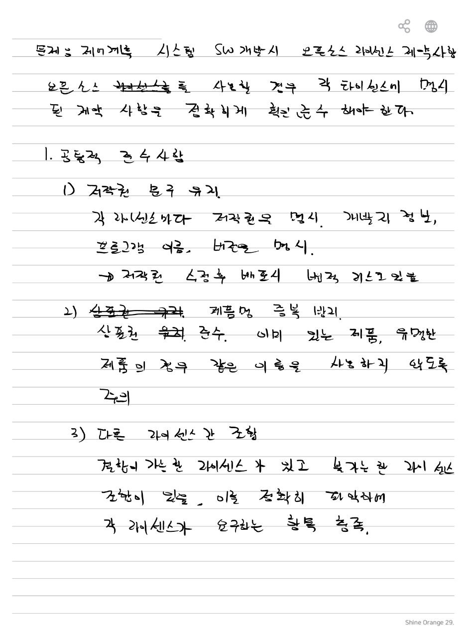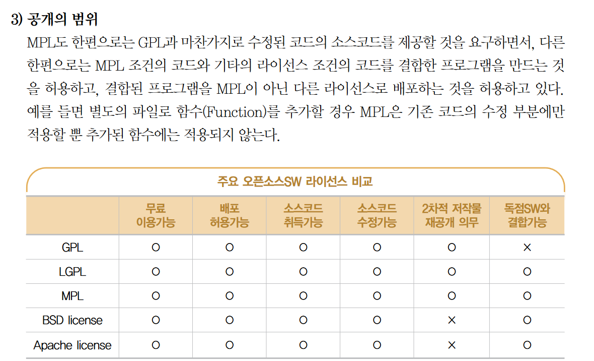 계측제어시스템의 소프트웨어 개발 시 오픈소스를 사용할 경우 라이센스별 제약 사항에 대하여 설명하시오