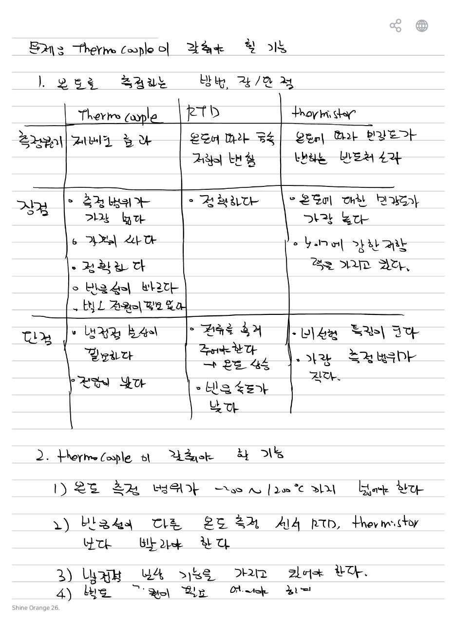 Thermocouple, RTD, 그리고 Thermistor는 모두 온도를 측정하는 센서입니다. 각각의 센서는 다음과 같은 특징을 가지고 있습니다: