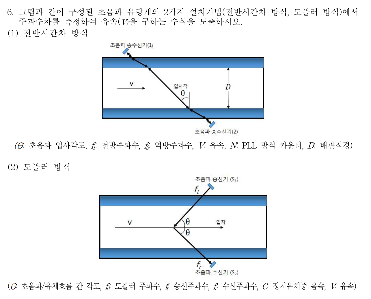 이 방식에서는 두 개의 초음파 송수신기가 유체 흐름에 직교하게 배치됩니다. 한 송수신기는 유체의 흐름 방향으로, 다른 하나는 반대 방향으로 초음파를 발사합니다24. 유체의 흐름에 따라, 흐름 방향으로 발사된 초음파의 이동 시간은 반대 방향으로 발사된 초음파의 이동 시간보다 짧아집니다24.