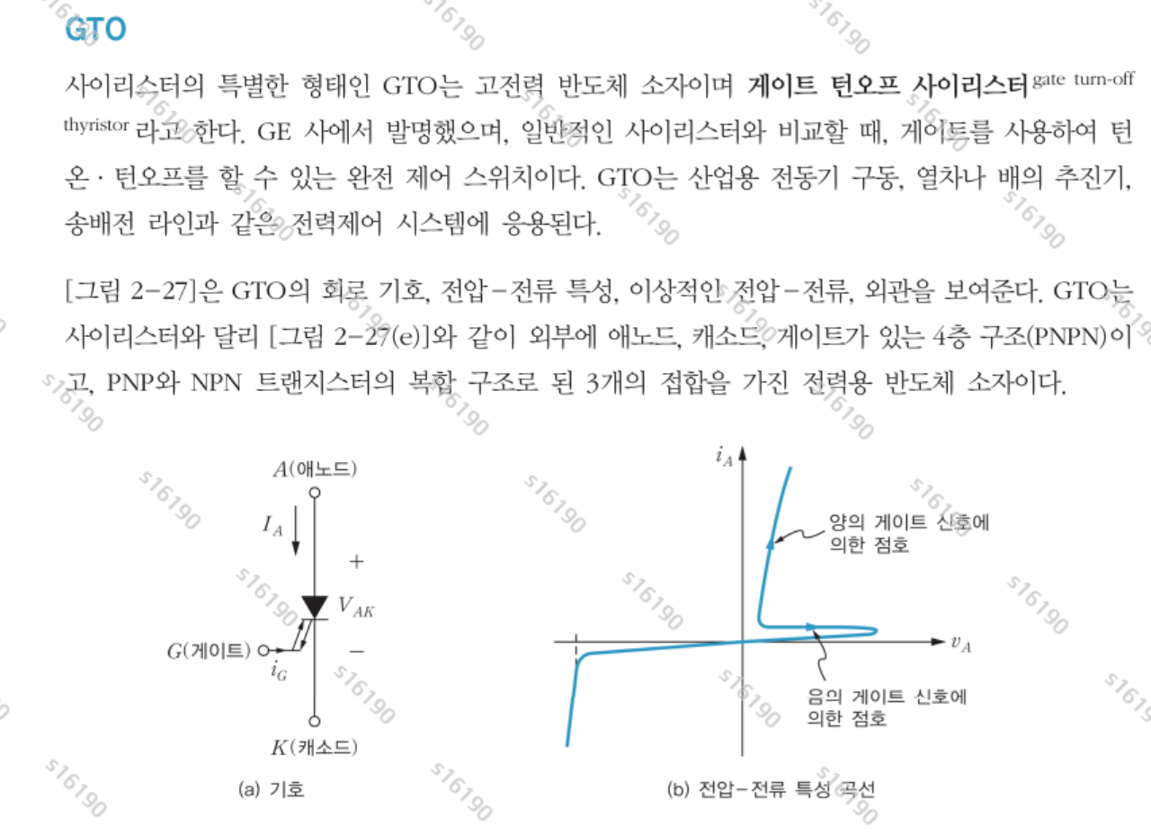 - GTO: 완전한 스위치. 게이트 신호만으로 ON/OFF 모두 가능.