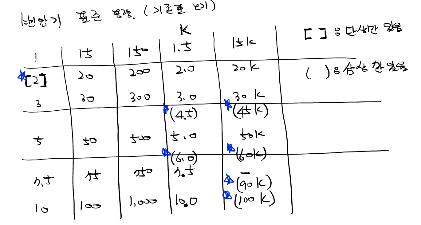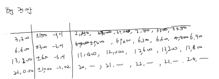 차이만큼 리스트로 입력 (4, 2,4,6,9, 10,15,20,25, 25,30,35,55)