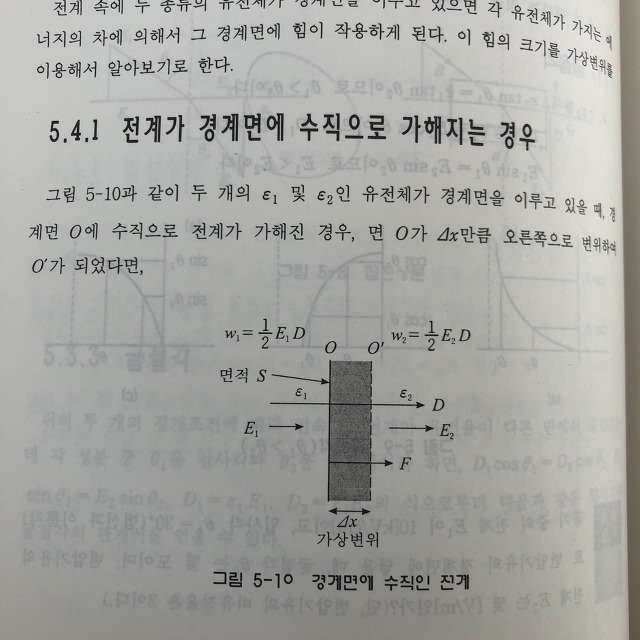 전계가 경계면에 수직으로 들어갈 경우힘.