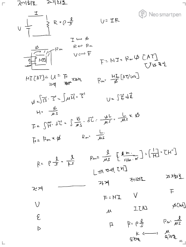 전류가 흐를 경우 자계로 인한 힘 발생.