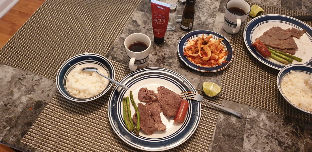 대략 계산해 보면 일주일 밥값으로 약 65$를 사용한다. 맥주 12병, 고기 1팩, 소세지 1개, 치즈 한개, 야채 등 사면 딱 일주일 산다. 일주일 2번 고기먹는데 필요없이 너무 많이 먹는다. 이 많은 에너지를 다 어디에 써야 하나? 밥하고 설겆이하는 낙으로 3주 넘게 남은 시간을 잘 보내자.