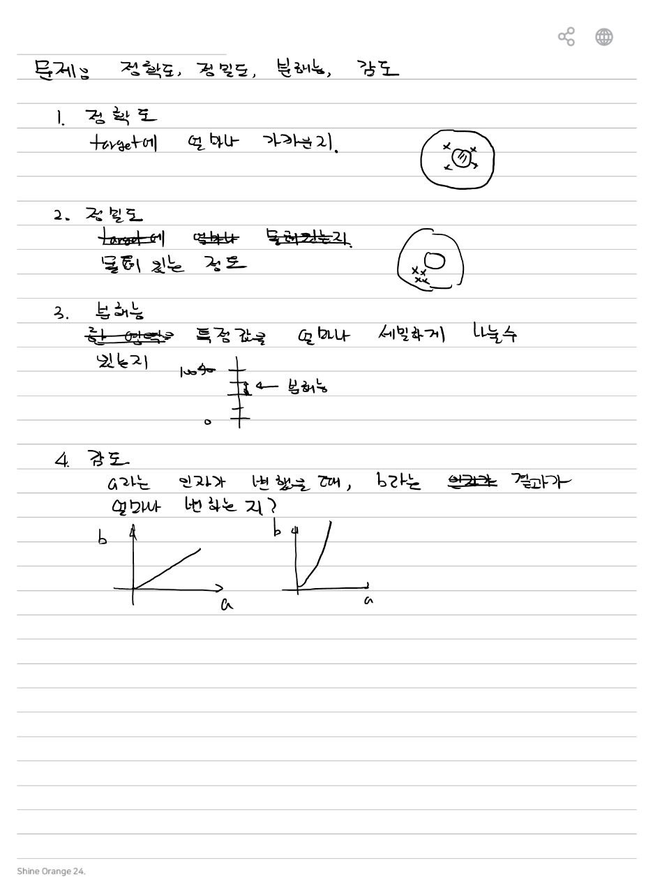 이러한 성능 지표들은 계측기의 성능을 이해하고 비교하는 데 사용됩니다. 각각의 요소들이 함께 고려되어야 하며, 특정 응용 분야나 요구 사항에 맞게 선택되어야 합니다1.