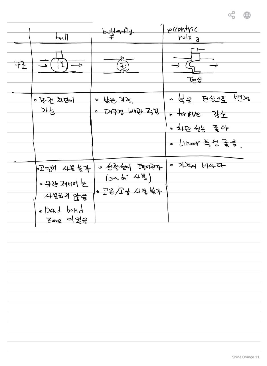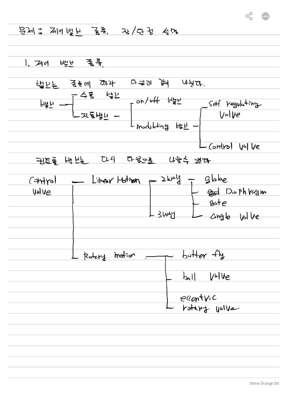 공정제어에 사용되는 제어밸브의 종류 및 장·단점에 대하여 설명하시오.
