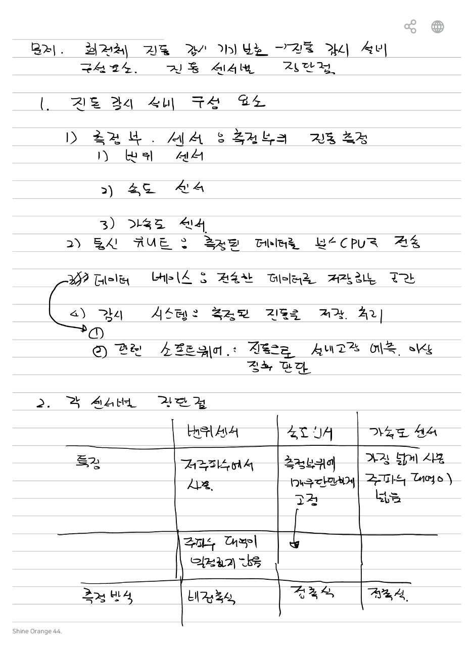 회전체의 진동 감시 및 기기보호를 위한 진동감시설비의 구성요소와 진동센서별 장·단점에 대하여 설명하시오