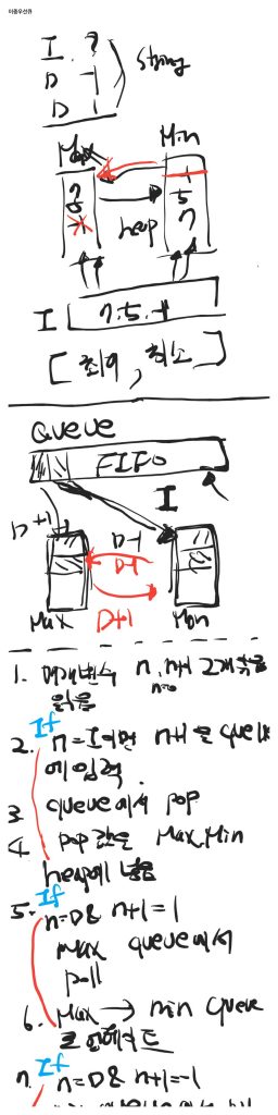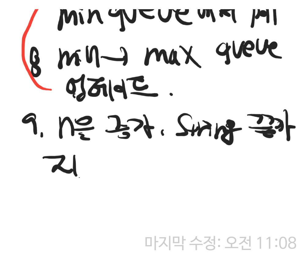 위 방법대로 하려다 잘 안된다. max 큐에서 min큐로 변경될 때 연산이 하나씩 틀어진다. 결국 max queue를 poll하면 min queue를 클리어하고, max queue로 업데이트 했다.