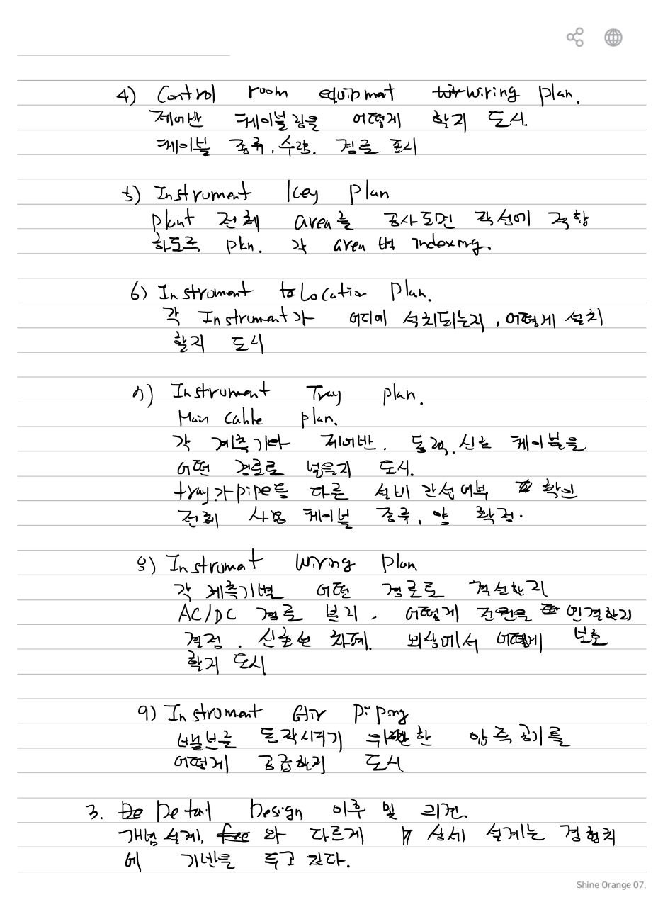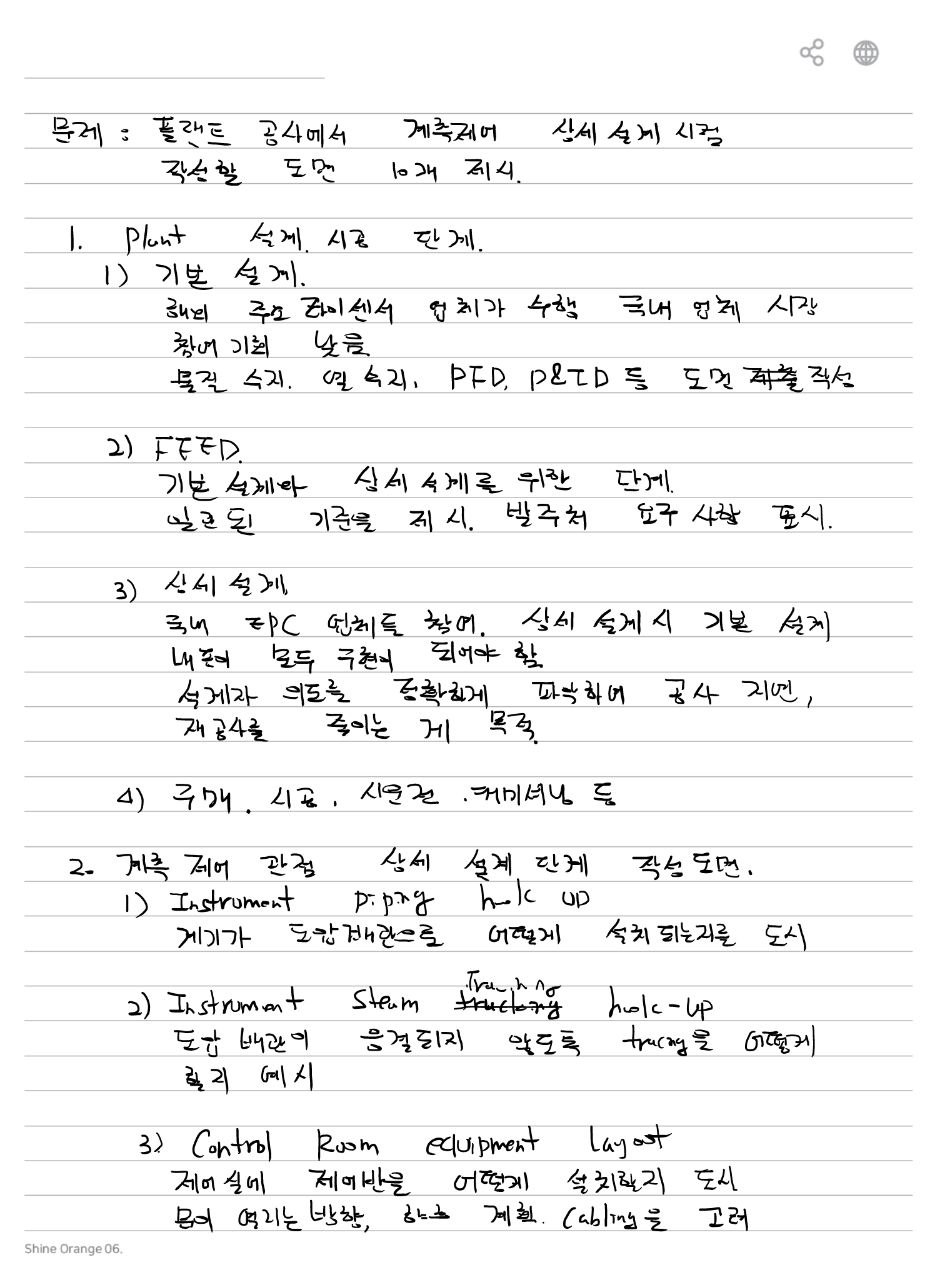 플랜트 공사에서 계측제어 상세 설계시 작성하여야 할 설계도서 및 도면에 대하여 10가지 설명하시오.