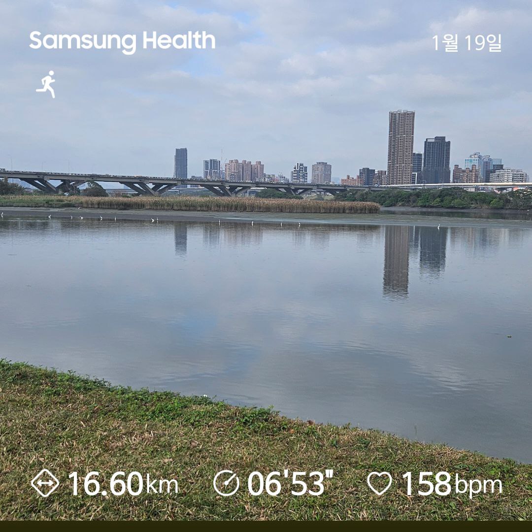 평균 페이스 06’53”. 초반에는 컨디션 조절에 집중하며 안정적인 흐름을 유지했습니다. 16km 지점을 지나니 확실히 체력적인 안배와 보급의 중요성을 다시금 실감하게 되네요. 아직 목표 거리의 절반 수준이지만, 오늘의 기록을 발판 삼아 부족한 지구력을 차근차근 보완해 나갈 예정입니다. 포기하지 않고 32km 고지까지 달려보겠습니다!