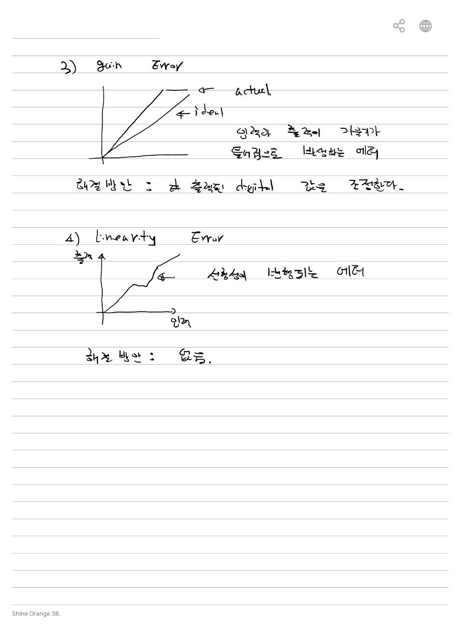 - 이득 오차 (Gain Error): 변환 결과가 디지털 값에서 일정한 비율로 벗어난 경우를 말합니다3.