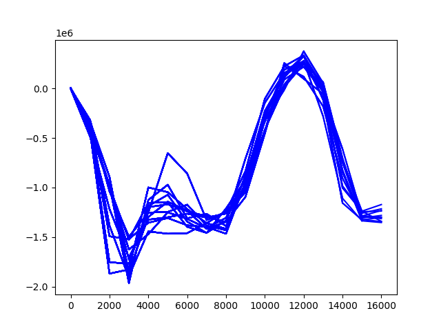 2,000번대에 주식을 사서 14,000번대에 팔고 싶다. 주식 차트를 보는 듯 하다. 위 그래프는 에피소드가 끝날 때 까지 새로운 action을 얻어야 했는데, action을 한번만 얻어서 그렇다. 제대로 실행하면 다음 그래프와 같아야 한다. 점수는 임의대로 했다.