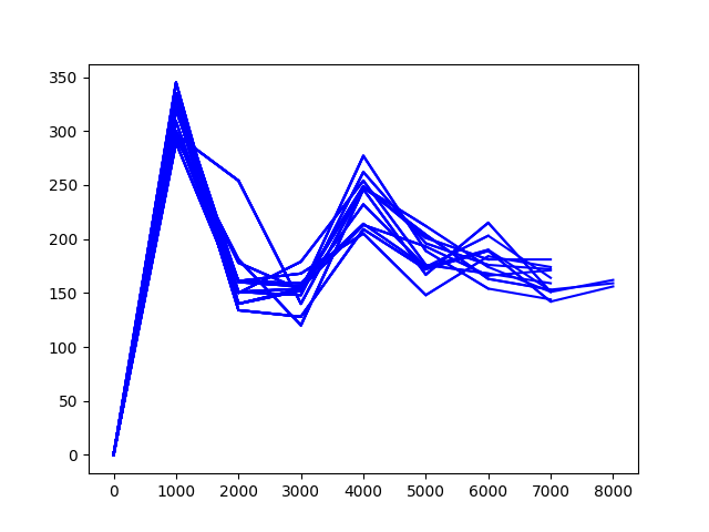 하…. 이거 한다고 거의 며칠을 날렸다. A3C 성능이 좋다길래 따라 해 봤는데, 내가 가진 책은 tensorflow 1.x 버전 기준 코드가 실렸다. tensorflow 2.x대로 업데이트 되면서 과거 여러 능력자들이 구현한 fit 부분 코드를 사용할 수 없게 되었다. 대세는 gradienttape()로 네트웍을 업데이트 하는 방법이라고 한다. a3c에서는 local 모델을 global 모델과 똑같이 만들고, local model 경험으로 global network를 업데이트 한다. thread 개수는 임의로 선택한다. a2c 확장편이라 thread 와 apply 부분을 조금 수정하면 쉽게 된다고 생각했다. state로 모델을 예측하는 부분을 틀려서 아래 결과를 얻었다.