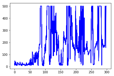 #pylab.plot(episodes, scores, 'b')