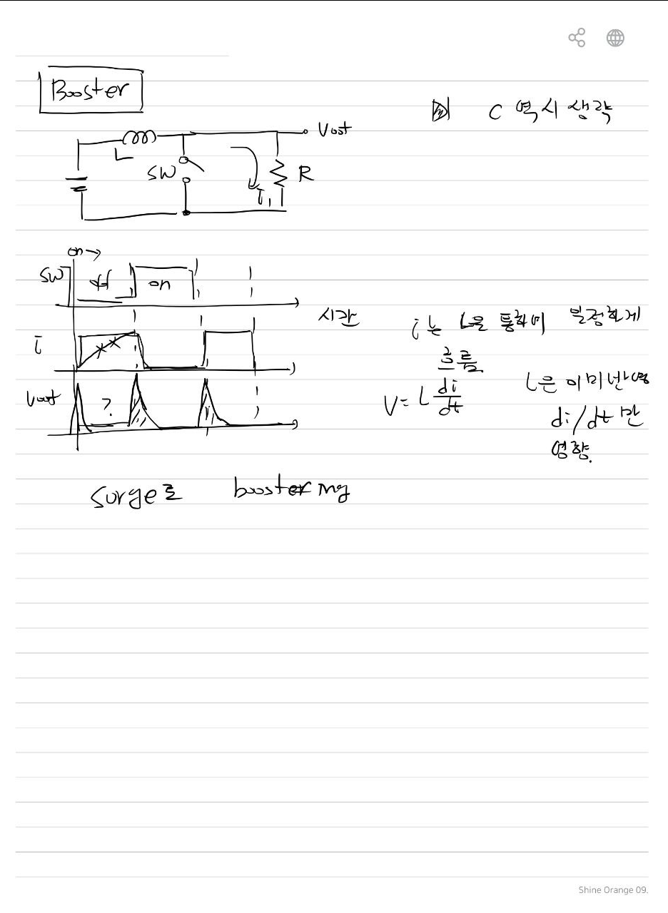 - Boost: 인덕터가 출력과 분리되어 있다가 다이오드를 통해 연결 → 전압 높임