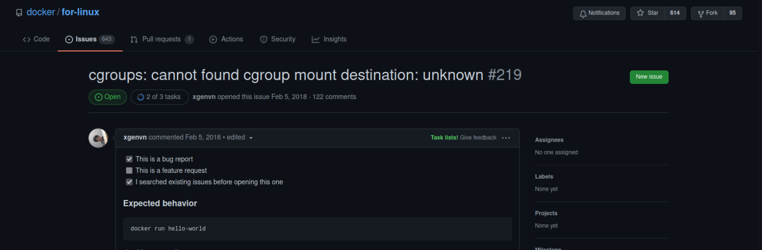 docker: Error response from daemon: cgroups: cgroup mountpoint does not exist: unknown.