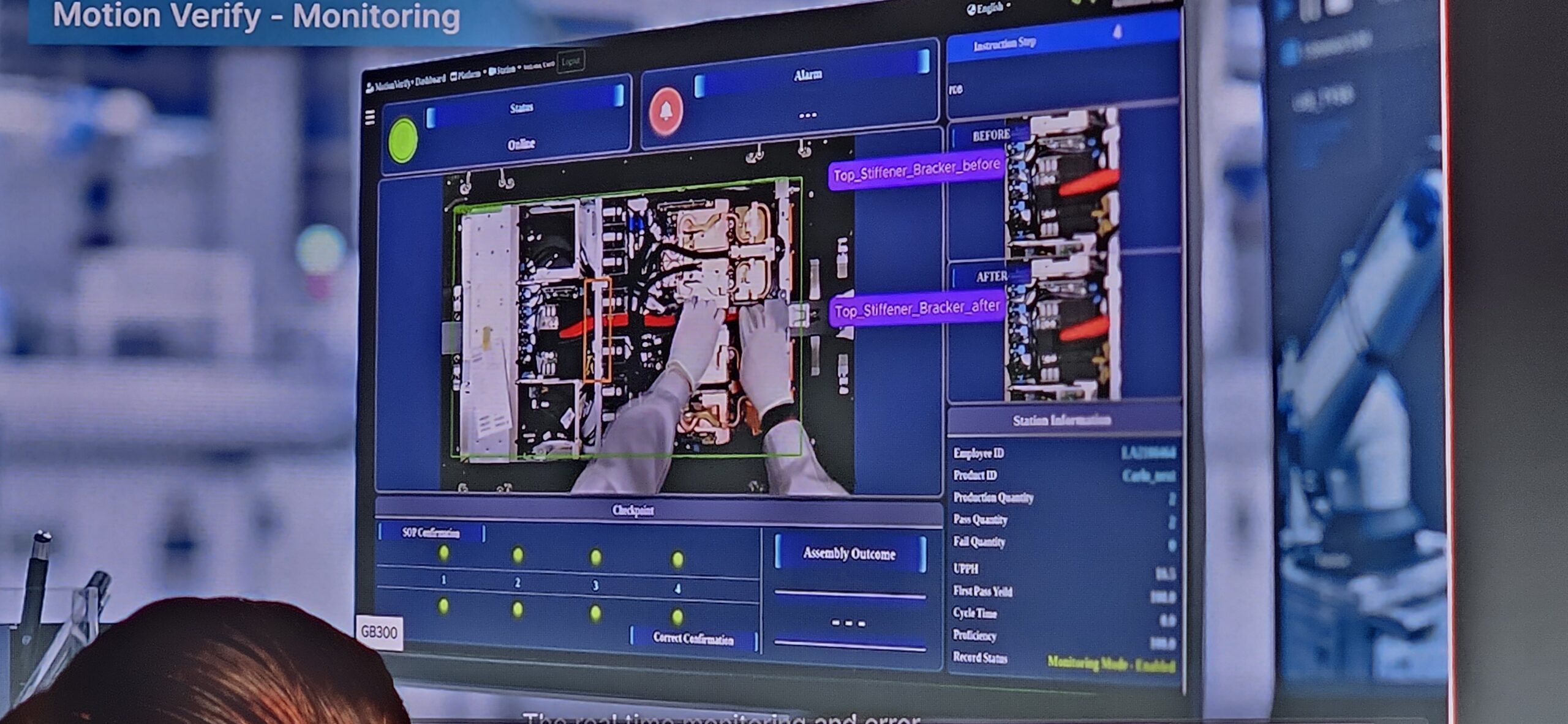 가장 먼저 눈길을 사로잡은 것은 GB300 자율 조립 및 모니터링 시스템 시연이었습니다. “Motion Verify – Monitoring”이라는 화면과 함께 로봇 팔이 정교한 작업을 수행하고, AI가 실시간으로 소프트를 확인하는 모습은 스마트 팩토리의 미래를 보여주는 듯했습니다. 특히 PLC와 CPU 간의 실시간 통신 상태를 직관적인 대시보드로 보여주는 부분이 인상적이었습니다.