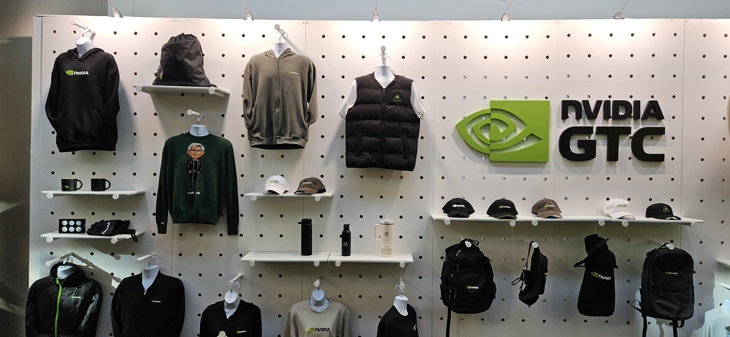 전시 참관을 마치고 기대하던 GTC Gear Store(기념품 숍)로 향했습니다. 다양한 티셔츠, 후드티, 모자 등 GTC 로고가 새겨진 굿즈들이 가득했습니다.