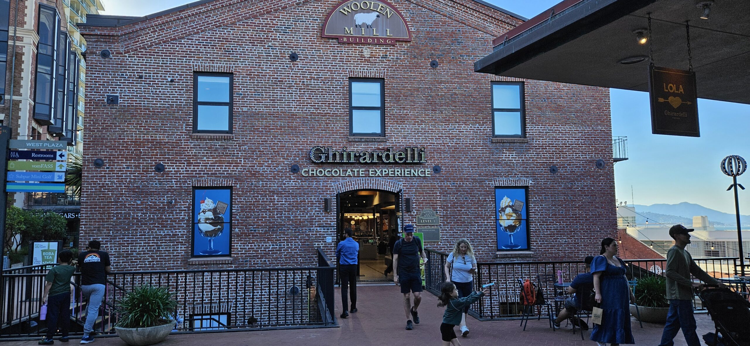 피어 39에서 북쪽으로 걸어가 **기라델리 스퀘어(Ghirardelli Square)**를 방문했습니다. 붉은 벽돌 건물과 ‘GHIRARDELLI’라고 적힌 거대한 전광판은 관광객들을 사로잡는 매력적인 공간이었습니다. 이곳에서 유명한 기라델리 초콜릿을 구매했는데, 나중에 공항 면세점에서 확인해 보니 공항 가격이 이곳보다 2배나 비싸더군요. 기분 좋게 쇼핑을 마무리했습니다.