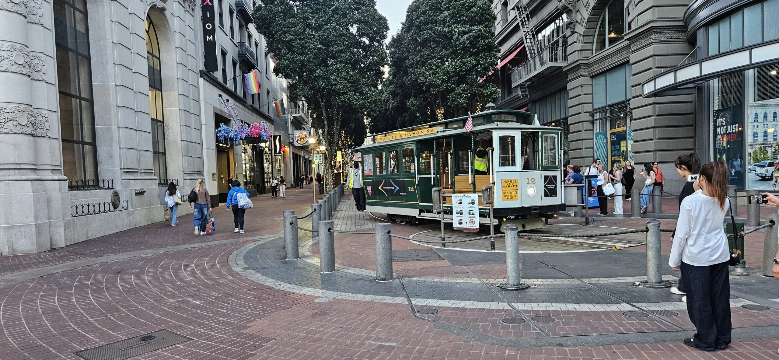 샌프란시스코에서의 마지막 일정으로 가장 유명한 케이블카 노선인 Powell-Hyde 트램을 탑승했습니다. 편도 9달러라는 가격이 조금 부담스러웠지만, 140년의 역사를 가진 수동 케이블카를 체험해 보는 것은 충분한 가치가 있었습니다.