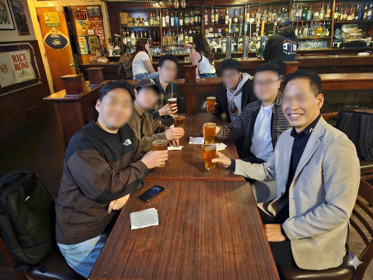 여행의 하이라이트는 역시 현지인들과의 만남이 아닐까요? 우리는 샌프란시스코의 유서 깊은 현지 펍(Pub)에서 즐거운 시간을 보냈습니다. 펍의 따뜻한 조명과 빈티지한 인테리어, 그리고 진심 어린 웃음 덕분에 여행의 설렘은 배가 되었습니다.
