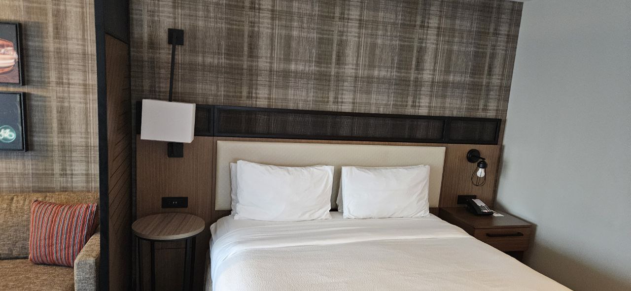 숙소는 공항 인근인 Millbrae 및 Burlingame 지역에 위치했습니다. 도착하자마자 깔끔하게 정돈된 침대와 아늑한 조명에 눈길이 갔습니다. 특히 호텔의 현대적이고 감각적인 체크 무늬 벽지가 인상적이었습니다. 아늑한 분위기 덕분에 여행 기간 동안 편안하게 쉴 수 있었습니다.