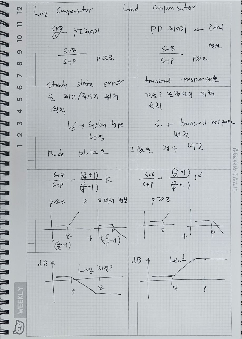 lead, lag compensator글쓴이 이대원 / 2024-03-15 진상 보상법과 지상 보상법을 비교하여 설명하시오. KOCW 곽관웅, 자동제어 2019, 참조 112회 Lag compensator 문제풀이 lag compensator 설계 root locus design