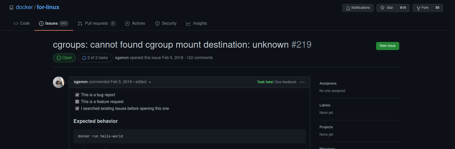 docker cgoup issue