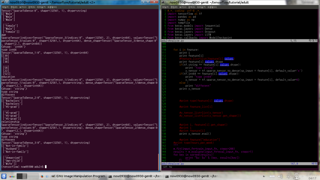 sparse_tensor_to_dense 전에 이어서… 각 행의 feature를 sparse tensor로 받아 들인다. tutorial에는 값을 확인하는 부분이 없다. 내가 입력한 값이 정확한지 이를