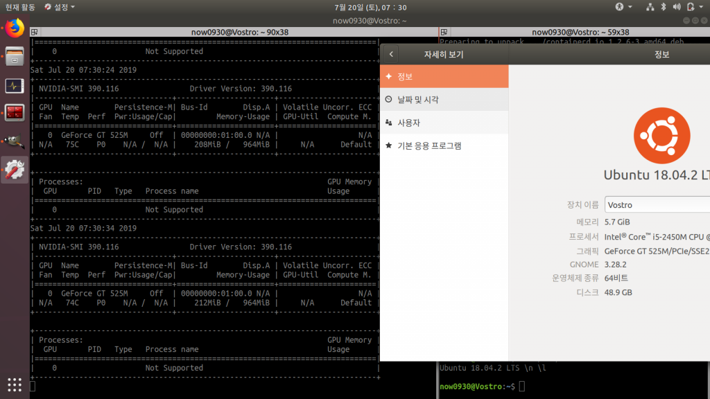 커널 5.2로 올리다 드라이버 버전 340을 설치했다 실패했다. 파일을 잘못 지우는 바람에 GUI로 안들어가 18.04.2를 설치했다. 과거와 다르게 비디오 램을 제대로 사용한다. 아마 nvidia 서비스를 블랙 리스트로 넣어서 그랬나 보다.