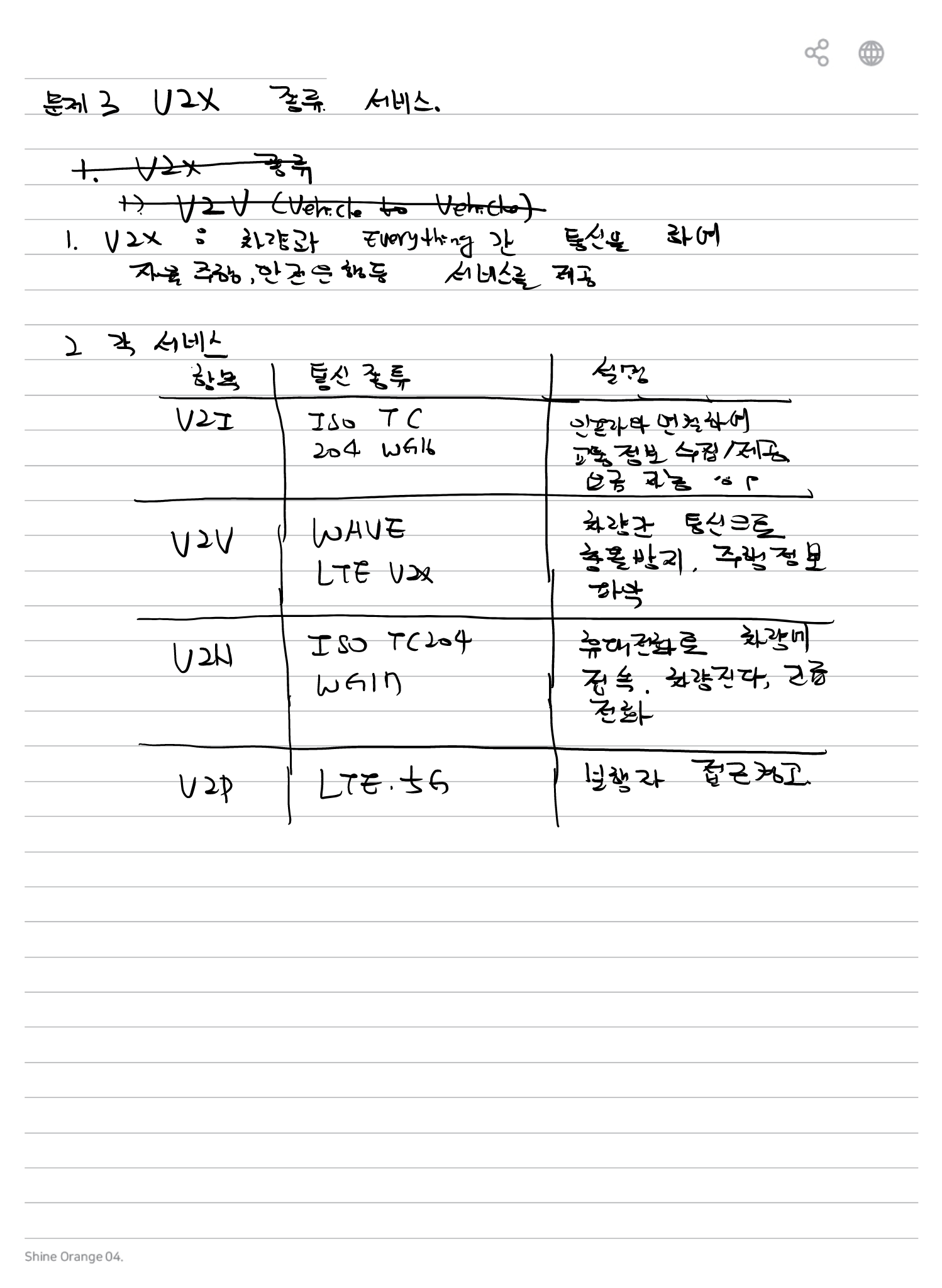 - V2V (Vehicle to Vehicle): 차량 간에 정보를 교환하여 충돌 경고, 교통 혼잡 예보, 길 안내 등의 서비스를 제공합니다1.