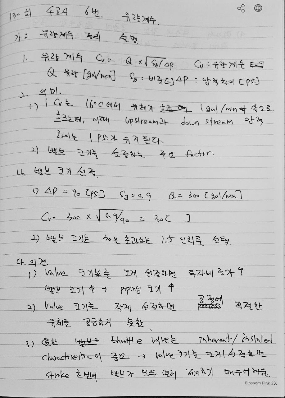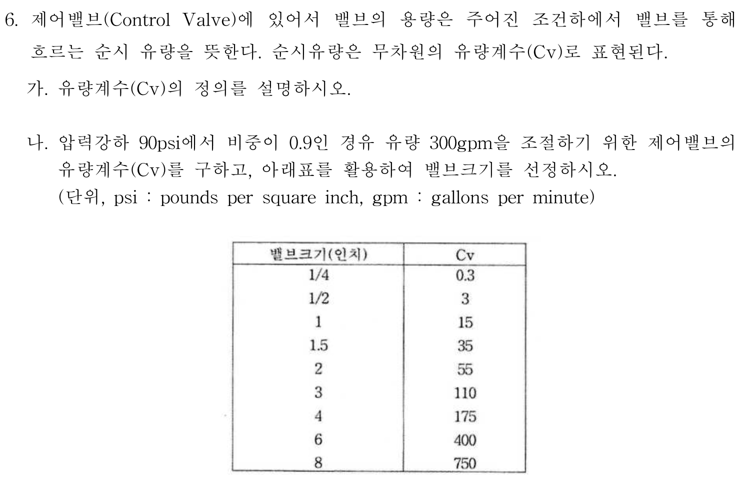 - (C_v)의 단위 표현은 “갤런/분/√psi”로 나타나지만,